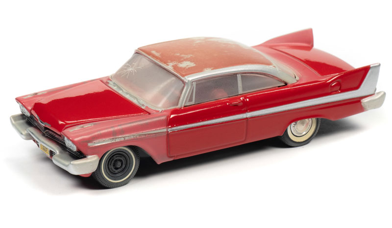 Auto World Silver Screen Machines presents Christine's 1958 Plymouth Fury partially restored in dirty red 1:64 scale diecast. Accurately scaled, authentic movie replica with die-cast metal body and chassis with opening hood