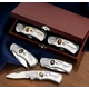 A beautiful 5 piece knife set from Hurley featuring past United States Presidents. Each knife is heavy, durable, with a stainless steel blade, features the president's photo, years in office, their photo and the U.S. flag. The set includes George Washington, Abraham Lincoln, Franklin D. Roosevelt, Dwight D. Eisenhower and John F. Kennedy.