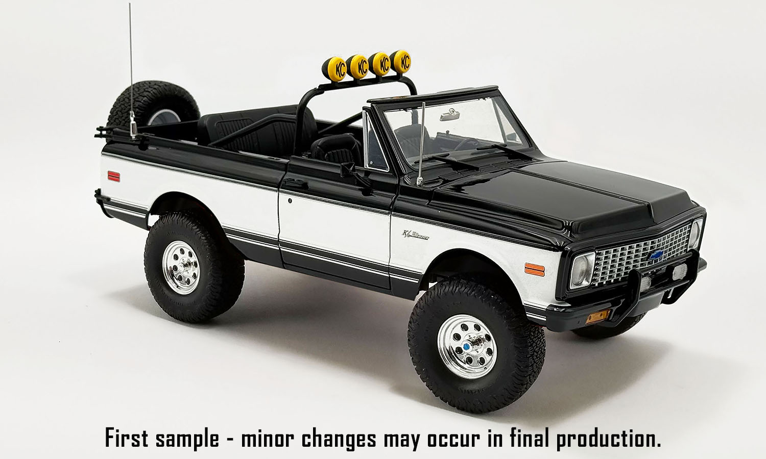 1/18 scale diecast car model of 1971 Chevrolet K5 Blazer Tuxedo Black and White Limited Edition to 396 pieces Worldwide die cast model car by ACME.