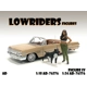 American Diorama Figurine - Lowriderz Figure IV. 1:24 scale female figure in a black shirt and green pants with a dog. Hand painted cold-cast resin. This 3"H figure is great for decorating 1:24 scale cars, auto body shop and dioramas. Manufactured by American Diorama. Individually packed in a blister card. Card size: 4" x 7.5".