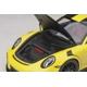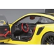1/18 scale car model of Porsche 911 (991.2) GT2 RS Weissach Package Racing Yellow with Carbon Stripes model car by Autoart. Brand new box. Has a roll cage. Real rubber tires. Carpeted interior. Steerable wheels. True-to-scale detail. Detailed interior, exterior. Opening frunk and doors. Officially licensed product. This item is made of composite. Manufacturer's original unopened packaging. Dimensions approximately L-9.75, W-4.25, H-2.75 inches.