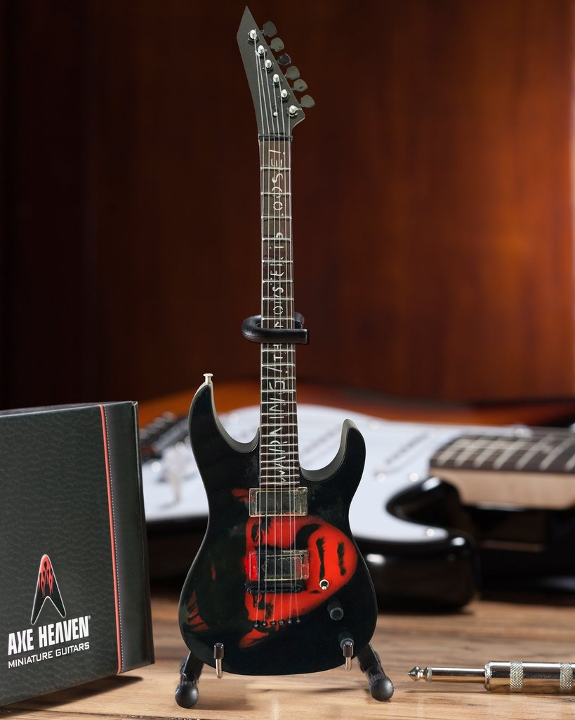 Each guitar model is approximately 10” in length and comes complete with a high-quality miniature adjustable A-frame stand and an AXE HEAVEN® guitar case gift box stamped with silver foil.