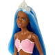 • ​Long, blue fantasy hair and a royal tiara complete Barbie® doll's magical mermaid look.​