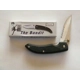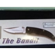 Baraccuda Rostfrei The Bandit folding knife features a 3-1/2" stainless steel blade, 4 inches closed, a thunb screw opener, liner lock half serrated blade, rubber handle with pocket/belt clip on the back.