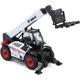 Bobcat T40.180SLP Telescopic Handler with Man Platform Black and White die cast model by Bburago. Real rubber tires. Has moving parts. Detailed interior, exterior. Officially licensed product. Made of diecast with some plastic parts. Dimensions approximately L-7.5, W-2.5, H-3.25 inches.