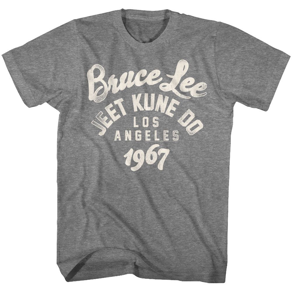 Officially licensed Bruce Lee merch. Printed in the USA by the popular manufacturer American Classics. The design is printed on the front. Comes in a nice gray color on an adult short sleeve heather t-shirt. Made out of a cotton polyester blend.