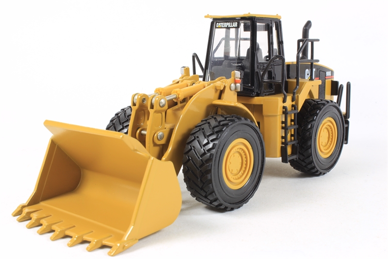 Norscot CAT 980G Front Loader 1:50 scale diecast. Durable, heavy die-cast metal, very detailed with wheels that roll and authentic tire tread design. The loader features articulating steering, oscillating rear wheels, moveable rock bucket and a boom that raises and lowers.