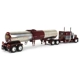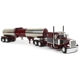 This authentic Peterbilt Model 359 with 63" Flat Top Sleeper diecast metal replica model comes paired with a Brenner Tank trailer and features an opening hood with authentic engine detail, accurately detailed cab interior, poseable front wheels, pivoting fifth-wheel for trailer attachment, and detailed chassis and undercarriage. Includes certificate of authenticity and custom Big Rigs™ Series Packaging. This quality replica is decorated with a maroon and gray paint scheme. This 1/64 scale replica measures approximately 12.25" long, 1.75" wide, and 2.5" high.