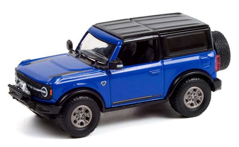 You won't believe the realistic detail on this legendary SUV from Greenlight Collectibles! This 2021 Ford Bronco 2-Door VIN #001 (Lot #3008) is a 1/64 scale model replica. Barret-Jackson Scottsdale Series 8. It comes in blue and features real rubber tires, detailed exterior, metal body and chassis, comes in a blister pack.