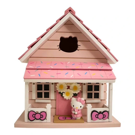 We have created the picture-perfect Hello Kitty Icon Bird House. While Hello Kitty is often depicted wearing pink clothing and accessories, and many of her products are also pink. This birdhouse comes with a three-dimensional figure of the classic Hello Kitty character.. Complete with all the creature comforts small nesting birds need and want clean-out, drainage, and ventilation features to ensure a safe and comfortable environment. Easy to install with a keyhole hook. DIMS:8.75 H X 7.50 W X6.00 D Entry Hole:1.25”