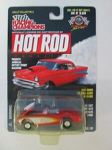 Racing Champions created this awesome Hot Rod Magazine Series of some of the coolest issues on the stands. Issue 108 featured the 1957 Chevrolet Corvette Limited Edition 1:61 scale diecast. 1 of 19,998 cars produced. Made from die-cast metal with a detailed engine, Issue Number and Serial Number on bottom chassis.