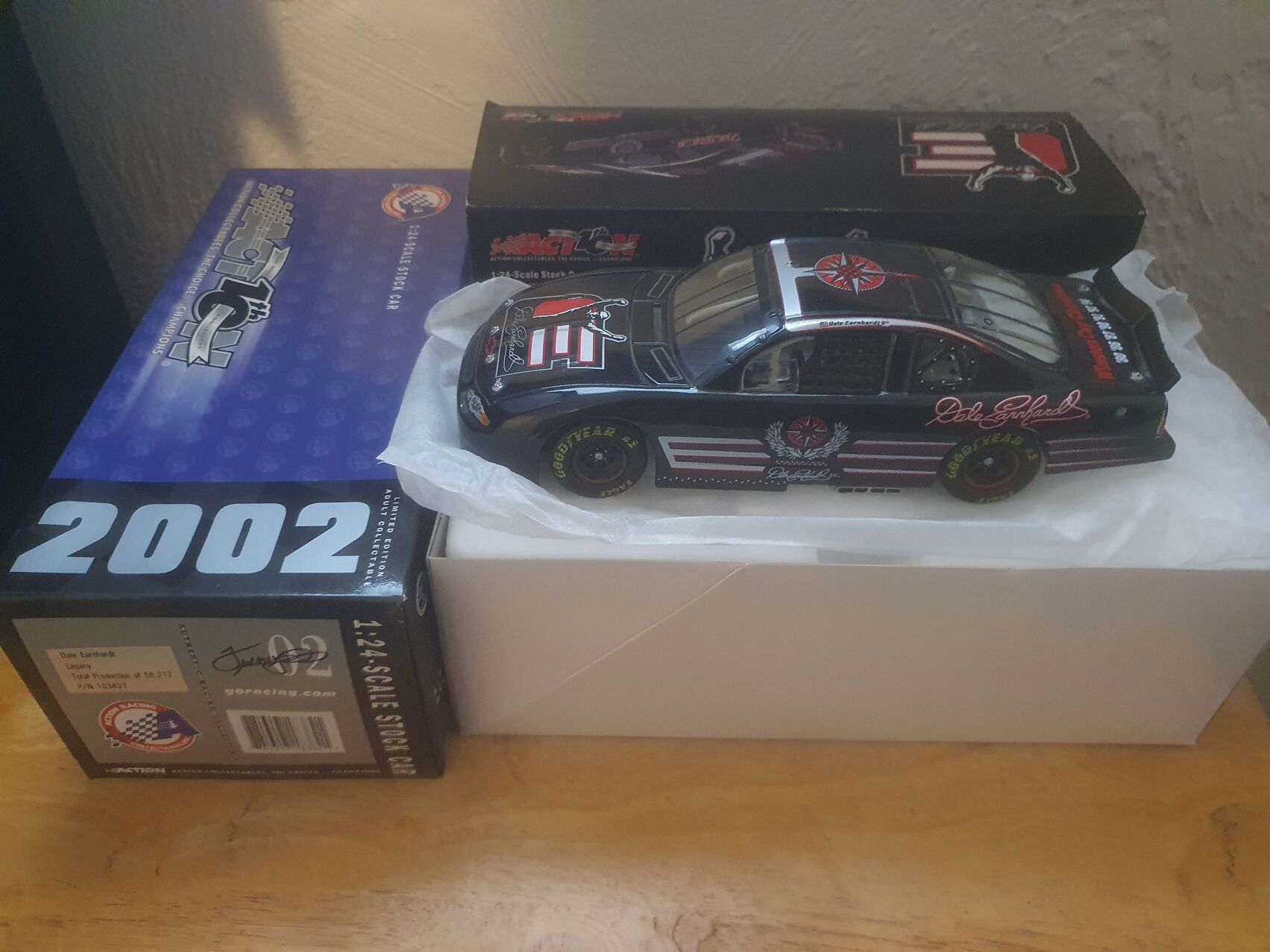 Produced by Action Collectibles, the 1:24 scale Dale Earnhardt Legacy Die Cast. Limited edition 1 of 58,212. Extreme detail inside and out with opening hood and trunk, workable steering. Dale's championship dates printed on the trunk. Produced in 2002, the year after his untimely passing.