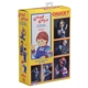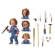 From the classic horror films, the murderous doll inhabited by the soul of a serial killer gets the Ultimate treatment! This definitive version of Chucky comes with a whopping four interchangeable head sculpts, and is packed with terrifying accessories: baseball bat, hammer, voodoo knife, hunting knife, butcher knife, straight razor, yardstick, pistol, interchangeable right forearm with blade, interchangeable hands, and more.