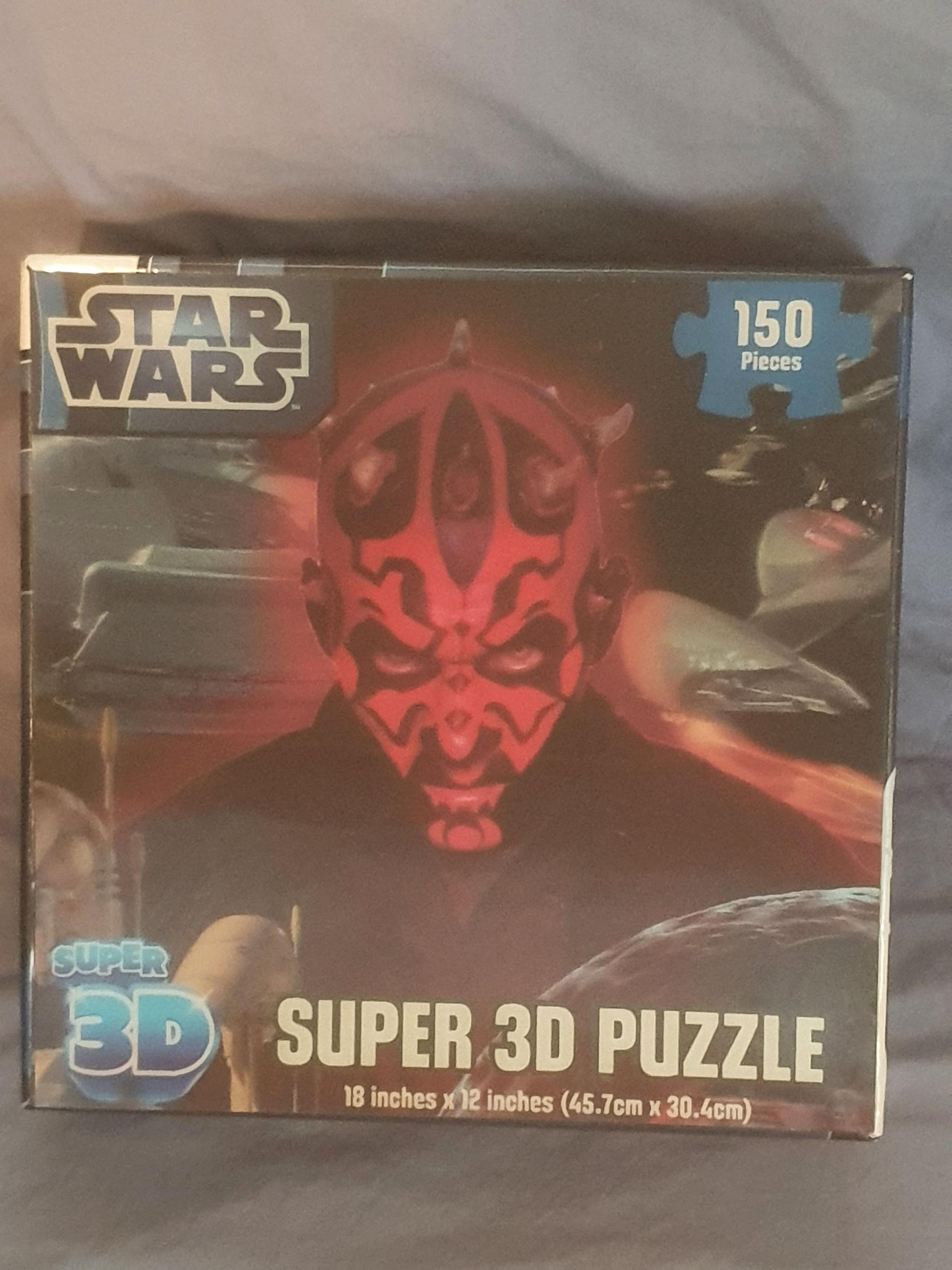 Star Wars 150 PC 3-D Super Puzzle Product Code: GF1yfgO Quantity: $8.51 inc. tax $7.99 ex. tax ? Tax based on Florida, United States. Add to Cart Add To Wishlist Facebook Pinterest Twitter Description A 150 piece Star Wars jigsaw puzzle with great 3-D effect. Features a finished measurement of 18" x 12" and an image that comes to life. Recommended for children 5 and up.