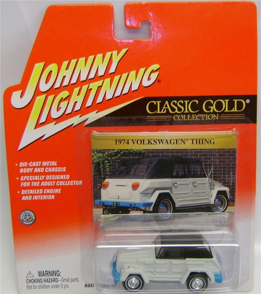 Johnny Lightning Classic Gold Series features popular vehicles of all makes and models, covering many different eras as well as various design groups and automakers. These models truly have a style and uniqueness all their own. Classic Gold is Johnny Lightning's most popular series. Each classic is decked out in authentic paint jobs and trims, chrome rims, plus rubber tires. Die-cast metal body and chassis and comes with a collector card. The 1974 Volkswagen Thing is a 1:64 scale must have.
