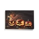 Add a spooky touch to your walls for Halloween with this LED canvas print featuring 3 jack-o-lanterns. Complete with a timer function. 2 AA batteries required. MDF, Polyester, LED Lights, Non-Woven, Battery Case, Wire.