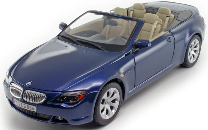 BMW 645 Ci Convertible 1:18 scale diecast model car. 10.5" long diecast metal. Highly detailed engine mechanisms/interior. Diecast metal, high-end sports car has workable steering, opening doors/hood/trunk. With plaque. Special Edition. Manufactured by Maisto