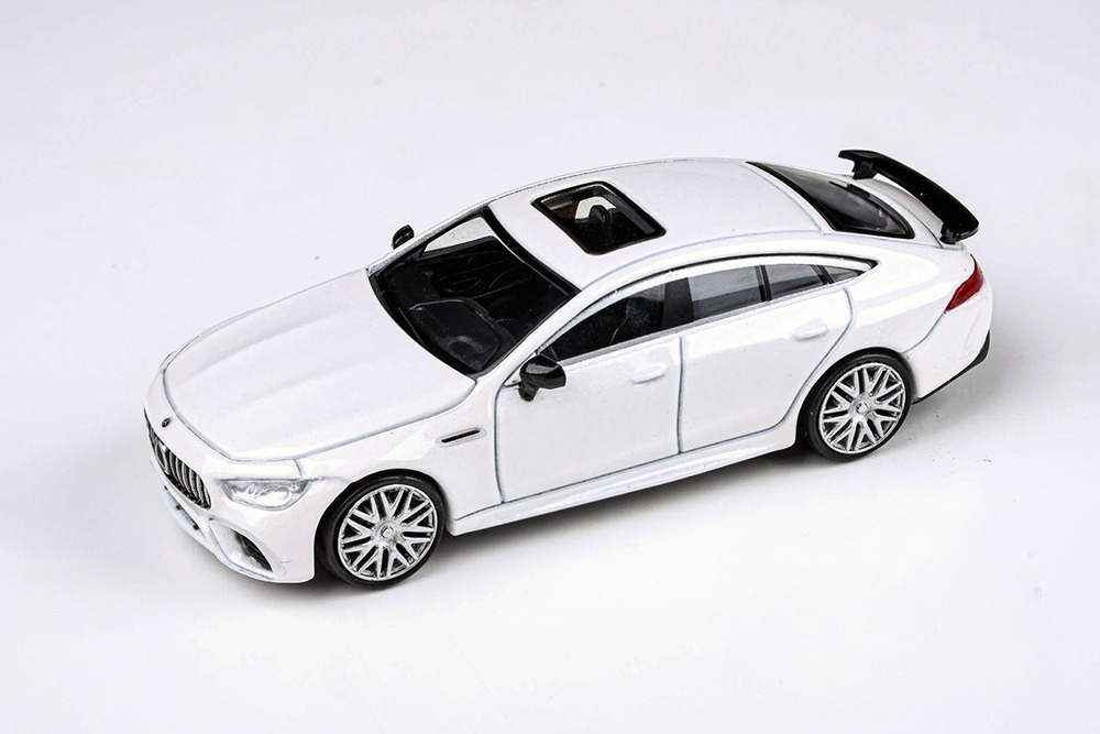 Paragon - Mercedes AMG GT 63 S. 1:64 scale diecast collectible model. This BMW a 3"L x 1"W x 0.75"H diecast metal car. This car does not have any openings. Includes a display base, acrylic cover and box. PA55284W is in Diamon White. This car is manufactured by Paragon Models. Individually packed in a hard-plastic case. Case size: 4.75"L x 2.25"W x 2"H.