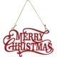 Merry Christmas Red Metal Hanging Sign will bring holiday cheer to your Christmas displays, whether it is displayed on its own on the front door or nestled into the tree! It is made of metal with a glossy, red finish on a cutout design that reads "Merry Christmas" in classic lettering with curling filigree details. It has a rustic, jute string hanger and measures 7" high by 12.25" wide.