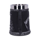 Have your favorite Metallica album artwork on display at all times with this exquisite Tankard, produced by Nemesis Now. Featuring the understated artwork from their self-titled studio album, the Metallica logo sits above a coiled up snake on a black background. The logo is mirrored in the handle of the tankard, which is cast in the finest resin before being expertly hand painted. Comes with a removable stainless steel insert for easy cleaning.