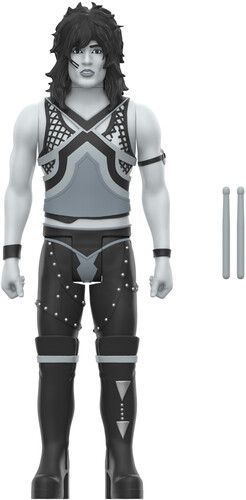Bang the drums, and your head, with the latest Tommy Lee ReAction Figure! Inspired by the black-and-white promotional photos for the band’s breakthrough second studio album, Shout At The Devil, this 3.75” scale Tommy Lee ReAction Figure features the legendary drummer in a greyscale colorway with metallic paint detailing, includes a set of drumstick accessories, and comes packaged on a die cut cardback reminiscent of the original album cover. Your toy shelf of rock icons is incomplete without this hard rock heavyweight— collect the grayscale Tommy Lee ReAction Figure today! Materials: Injected Paint & Plastic Ages 14+ Country of origin: China