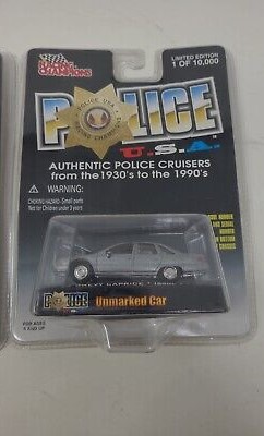 Racing Champions Fire Rescue Series U.S.A. 1:64 scale diecast models. Authentic Fire & Rescue Vehicles from the 1930's to the 1990's. Opening hoods, very detailed, and Limited Edition 1 of 10,000 units produced world wide. The Unmarked Car 1992 Chevy Caprice has an Issue Number and Serial Number on the chassis.