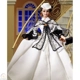 Ms. O'Hara looks gorgeous in her honeymoon ensemble. Her outfit includes a white gown that contrasts beautifully with the black lacey accents. .