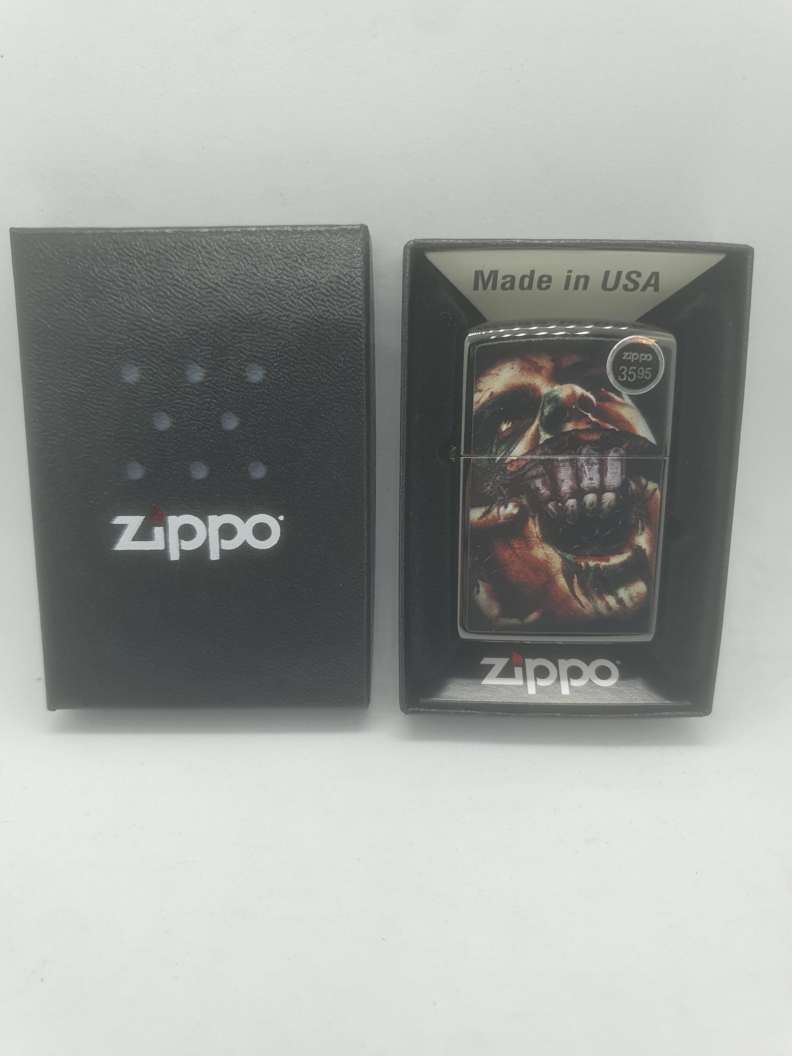 Skull / Spiders Zippo Product Code: jMfwT4c Quantity: $27.68 inc. tax $25.99 ex. tax ? Tax based on Florida, United States. Add to Cart Add To Wishlist Facebook Pinterest Twitter Description American made Zippo Lighter featuring a Skull with Spiders, bold coloring and wild detail