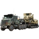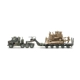 Military model M1070 & M1000 with D9RUS Army 70 Ton Tank Transporter & Bulldozer comprising M1070 8x8 Truck Tractor, M1000 Heavy Equipment Transport Semi-trailer, D9R Armed Bulldozer.