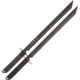 28" overall. 10 3/4" black finish stainless blade. Full tang. Black cord wrapped handle. Each sword has half of the tsuba. When swords are held together they look like one sword. Black nylon sheath with shoulder straps holds both.