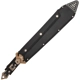 24" (60.96cm) overall. 17.25" (43.82cm) desert tan matte finish double edge stainless blade. Black and tan ABS handle. Partially serrated blade. Extended point pommel. Shoulder strap. Black nylon belt sheath. Comes Boxed.