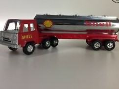 Vintage Chinese 10 inch Shell Oil Tanker diecast 1:32 scale. Heavy gauge pressed steel and authentic plasic parts with fast free running wheels, comes in original packaging. Produced by Kai Yip Manufactory.