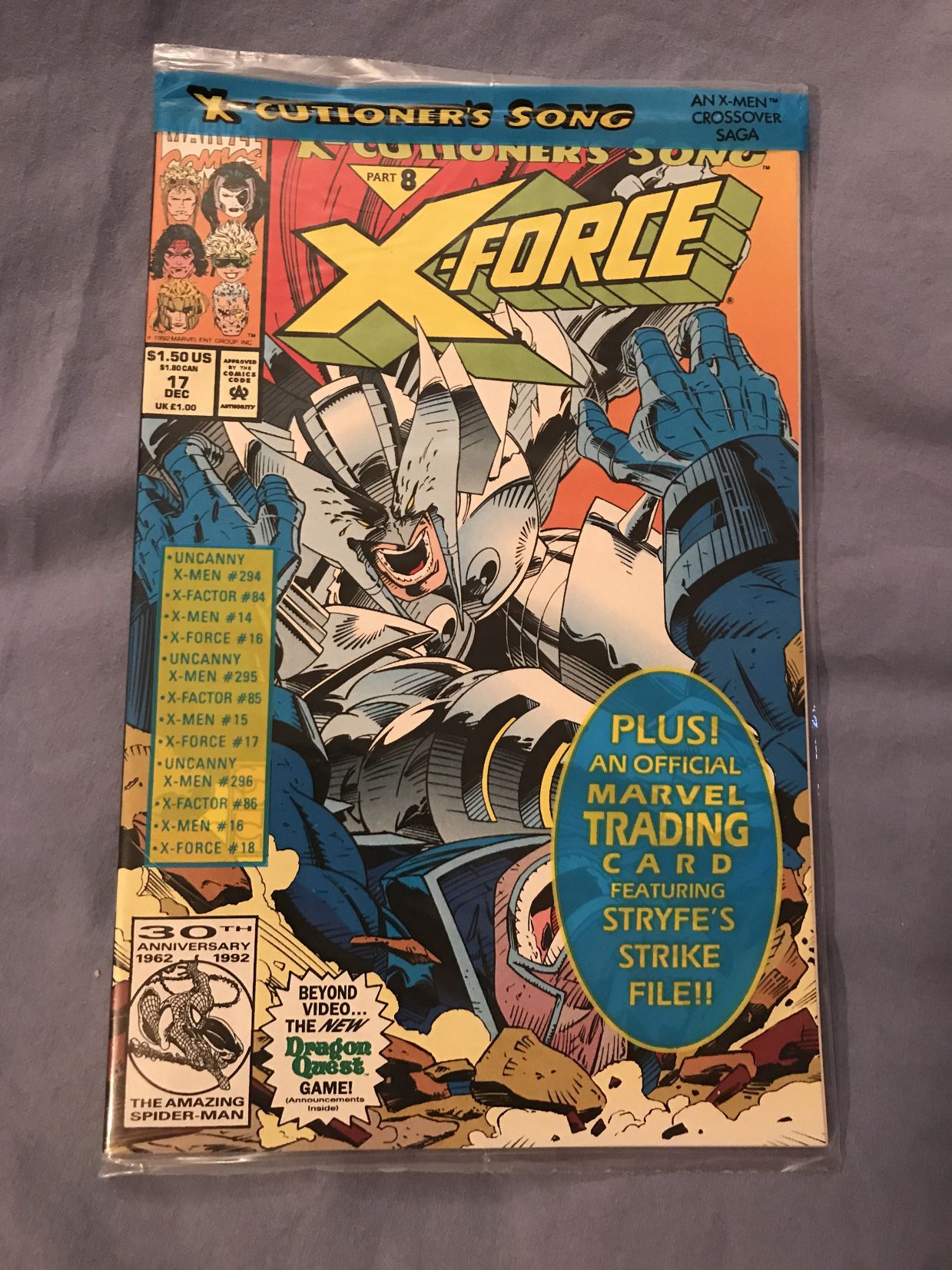 X-Force Comic Book - 1992 Product Code: 2hDZ1TM Quantity: $3.18 inc. tax $2.99 ex. tax ? Tax based on Florida, United States. Add to Cart Add To Wishlist Facebook Pinterest Twitter Description A Marvel Comic, Number 17, printed in 1992.